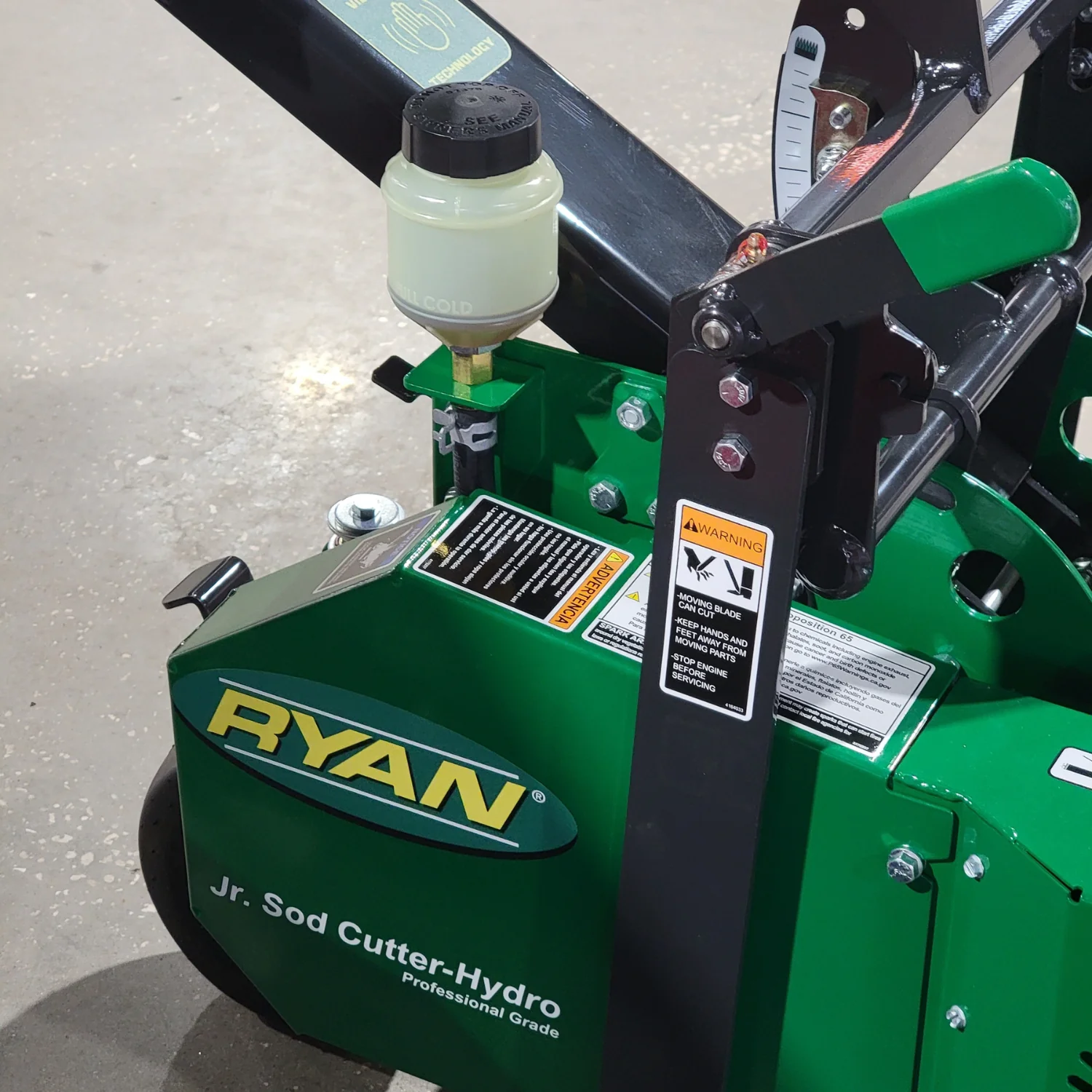 The RYAN JUNIOR 18" is a professional-grade sod cutter powered by a 5.5 HP Honda GX160 engine. It features reduced hand/arm vibration for comfort, a self-propelled drive for efficient operation, and a pneumatic rear caster wheel with lockout for precision around curves. Perfect for landscaping, golf courses, and rental use.